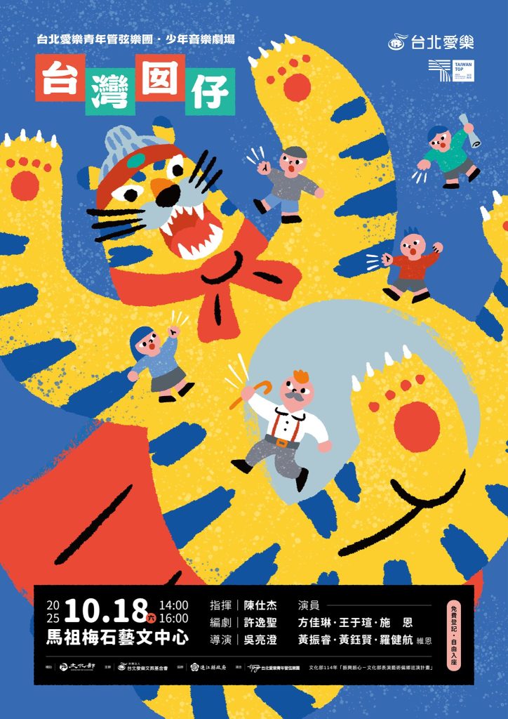 台北愛樂青年管弦樂團‧少年音樂劇場將於 10 月 18 日(六)下午 2 點與 4 點,登上 馬祖梅石藝文中心,帶來取材自台灣民間故事《虎姑婆》的原創音樂劇——《台灣囡仔》。本節目由指揮陳仕杰領軍,攜手編劇許逸聖與導演吳亮澄共同打造,融合劇場敘事與現場樂團演奏,為觀眾呈現一場兼具音樂性與戲劇性的家庭音樂饗宴。本演出為文化部 114 年「振興振心─文化部表演藝術偏鄉巡演計畫」 節目之一,免費入場、自由入座,誠摯邀請馬祖鄉親與旅人共同感受音樂與故事的魅力。
