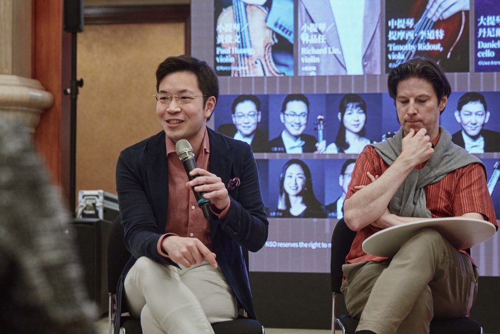 本屆音樂節中,品任是我非常欣賞的臺灣小提琴家,這也是他第三次參與,回到熟悉的臺灣,與熟悉的NSO夥伴再度合作。中提琴家提摩西則是第二次參與演出,他與品任其實都是第一屆便加入音樂節的成員,他也算是「半個臺灣人」,娶了臺灣太太,中文也越來越流利。