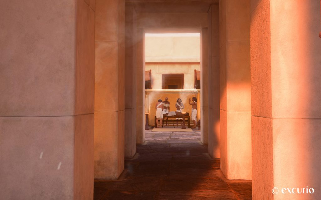 展場空間劃分成七大面向,運用色彩光影、建築語彙與現代配樂,強化觀眾對古埃及法老王權世界的理解。穿越入口廊道、踏進單元一「埃及:法老的國度」馬上就會被潺潺流水聲環抱;塞提二世王權坐像靜靜坐在有如尼羅河蜿蜒曲線的牆面前,搭配水波紋光影,觀眾彷彿行走在埃及的生命之河上,見證法老統治 3000 年的輝煌歷史。